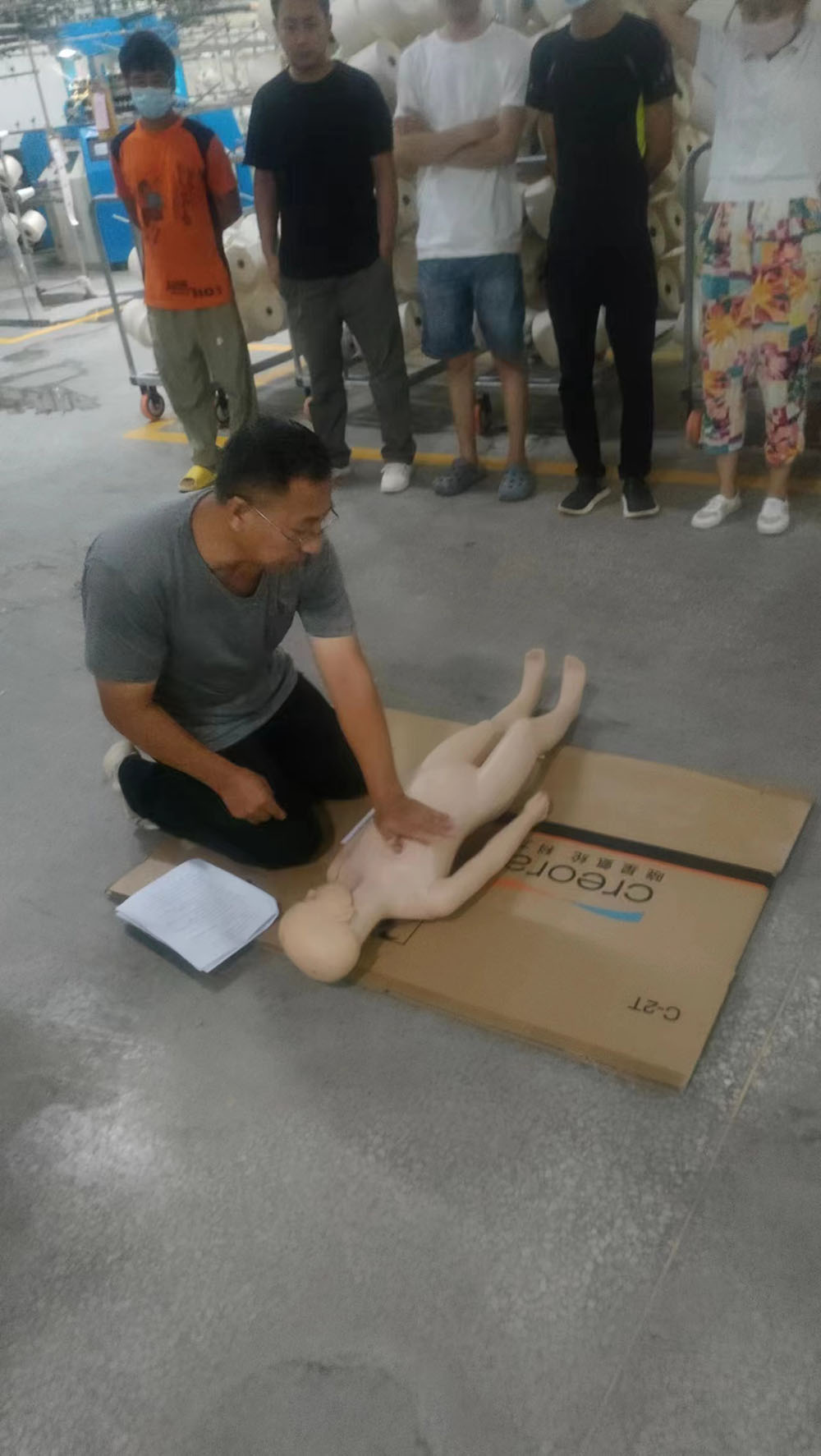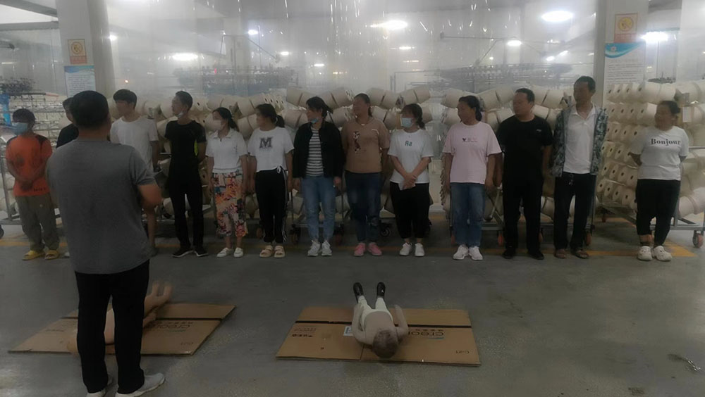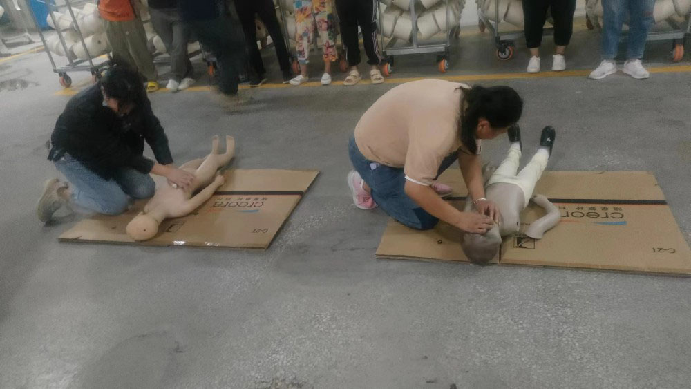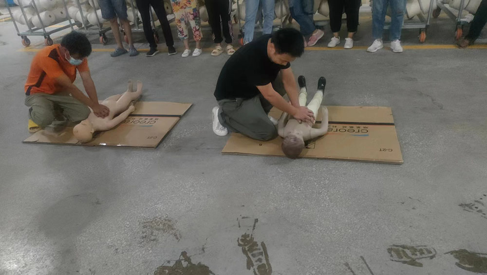 隨后,公司組織員工進行了休克、昏迷緊急救護演練,呼吸心跳驟停緊急救護演練,所有員工參加了心肺復(fù)蘇操作訓練。